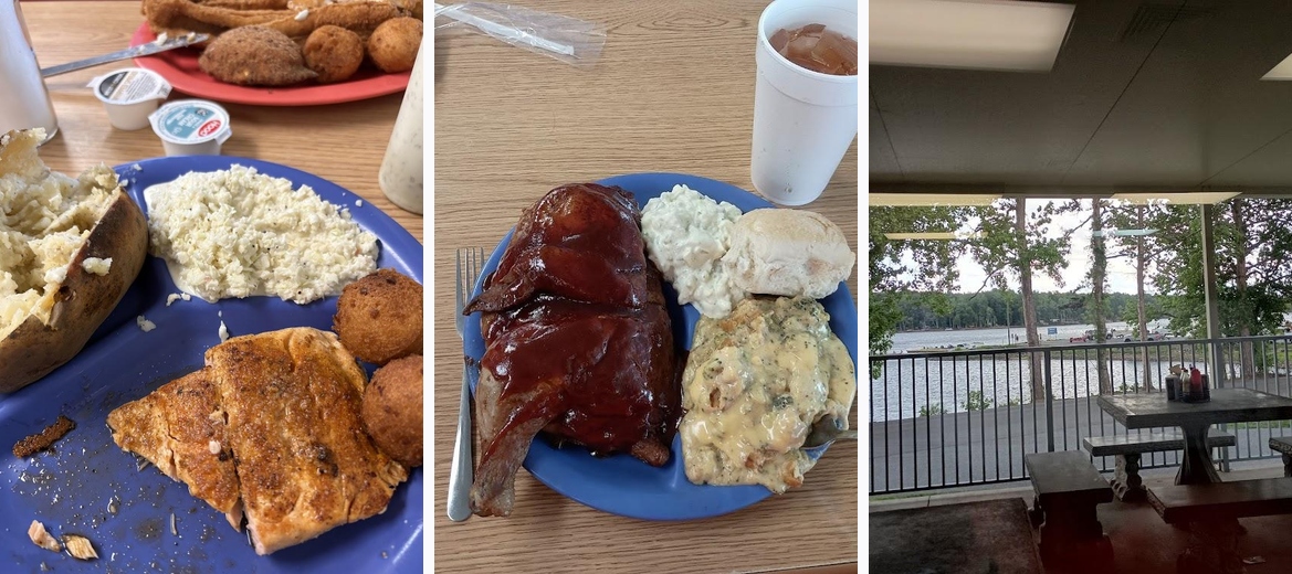 Had the half chicken with broccoli casserole and potato salad and a roll for $12.00. No extra charge for the view of the lake. Hard to beat. The food was excellent and served up quick. Would definitely recommend!
